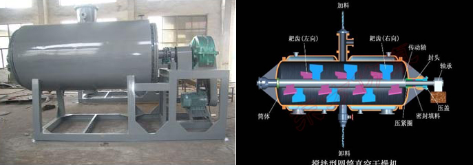 產(chǎn)品質(zhì)量高,干燥過程耙齒不斷正反轉(zhuǎn)動,被干燥物料攪抖均勻