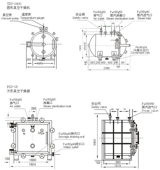 | 干燥箱內(nèi)尺寸 | Φ 600×976 | Φ 800×1247 | Φ 1000×1527 | Φ 1400×2054 | 1500× 1060×1220 |