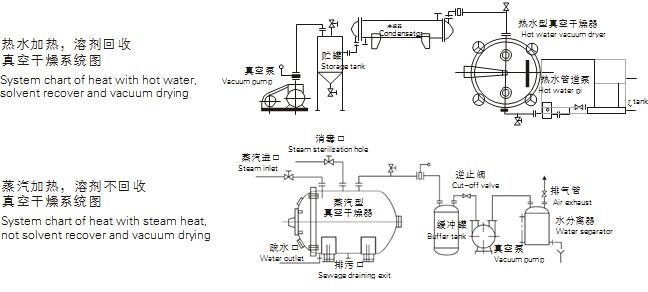 注:如采用冷凝器,物料中的溶劑可通過冷凝器加以回收;如采用SK系列水環(huán)真空泵,可不用冷凝器,節(jié)省能源投資。